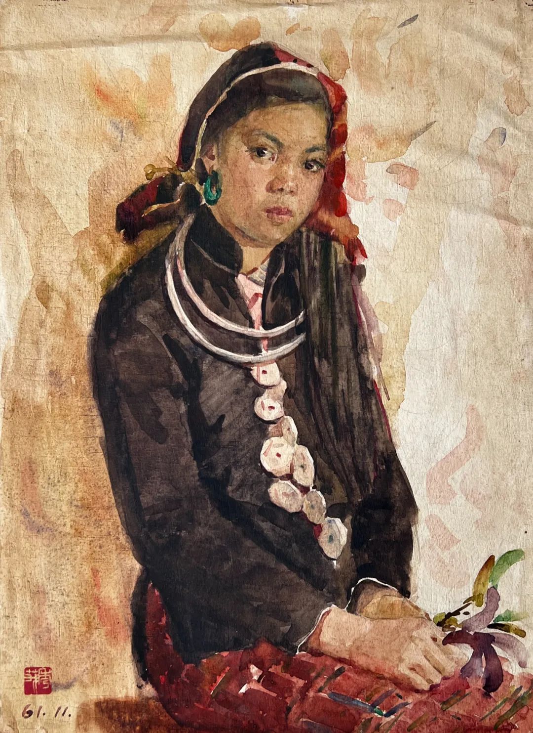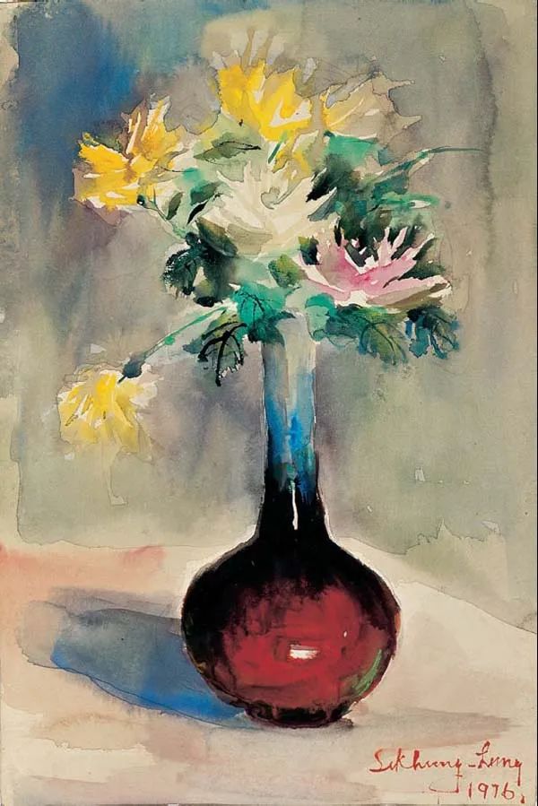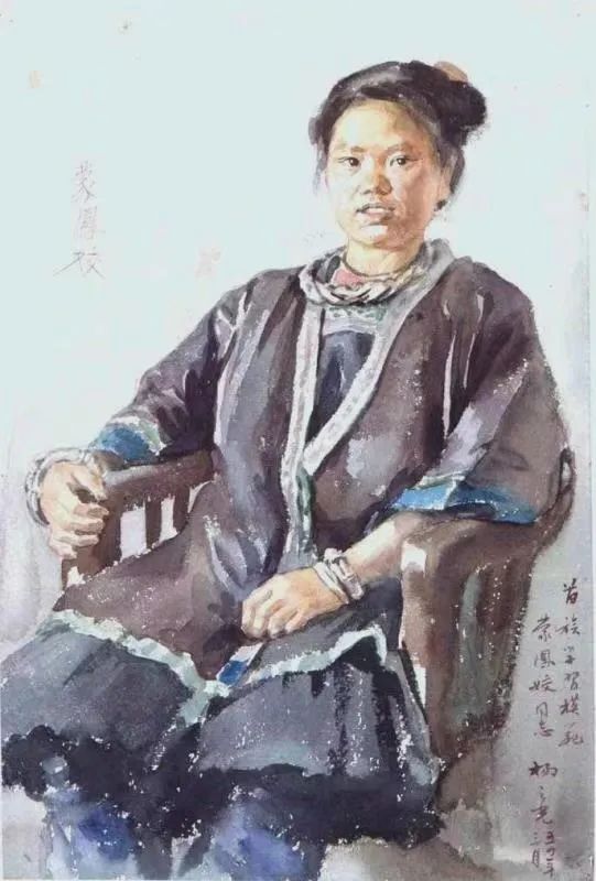 李铁夫 《瓶菊》 38.1cm×58.3cm 纸本水纸王肇民 《中秋佳节》39.4cm×54.3cm 纸本水纸杨之光 《苗族学习模范蒙凤姣》 38×26cm 纸本水彩