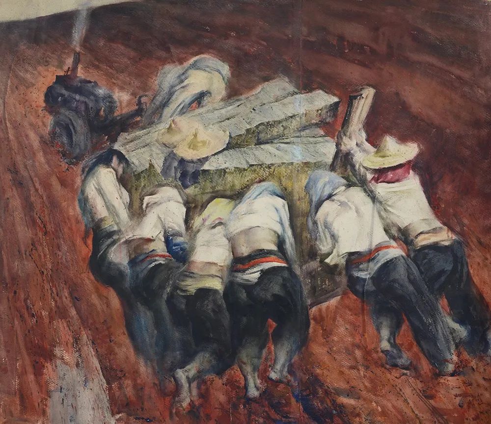 周刚《早班矿工》150x105cm 纸本水彩