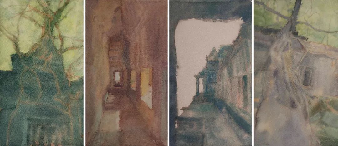 林娜佳《序曲 1.2.2》113x150cm 纸本水彩程思敏 《凝固的风景》150x80cm 53x76cm 纸本水彩