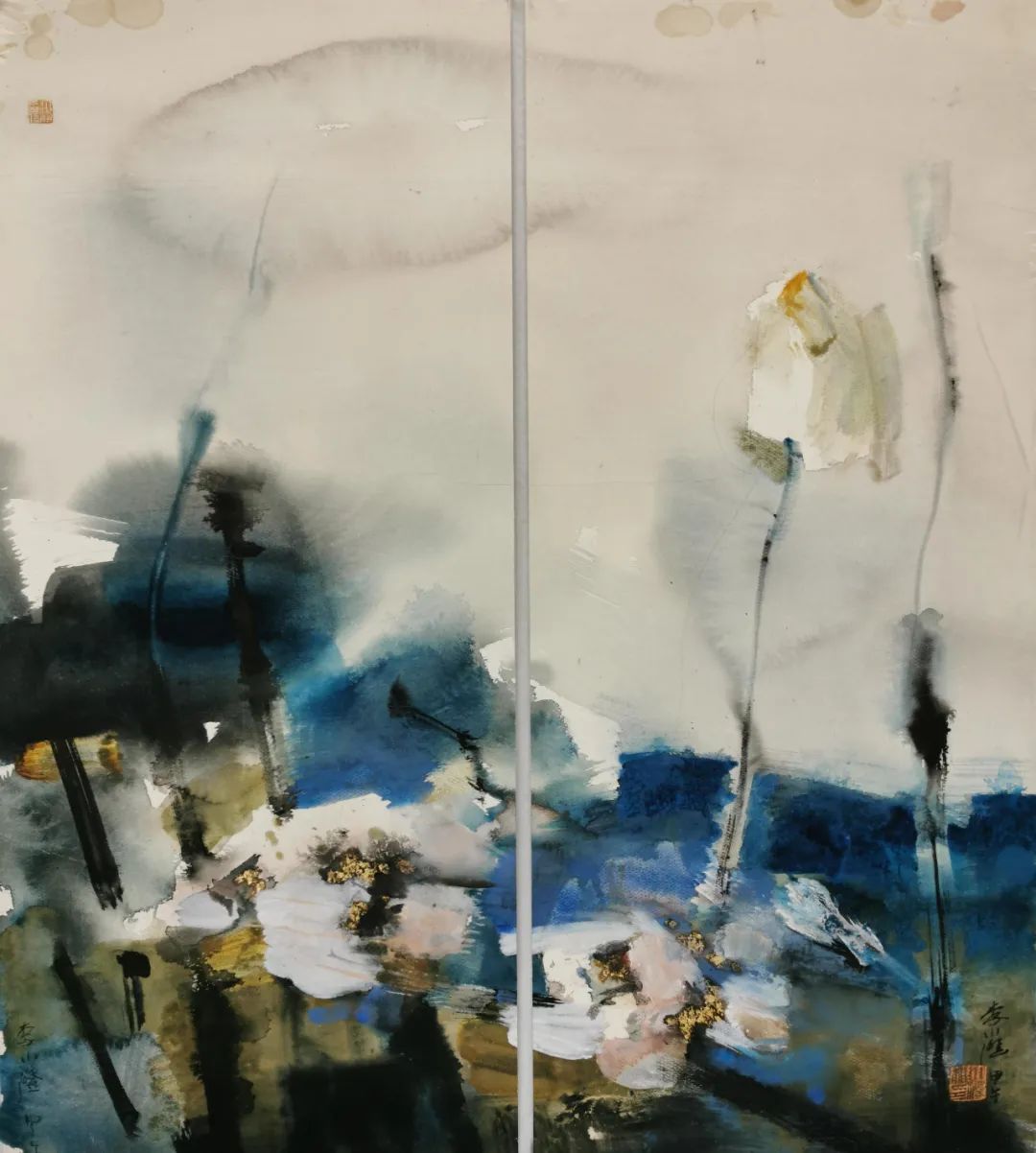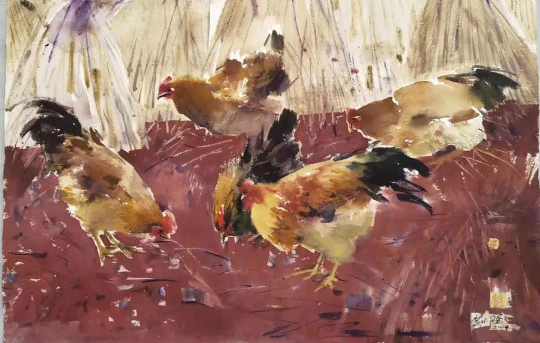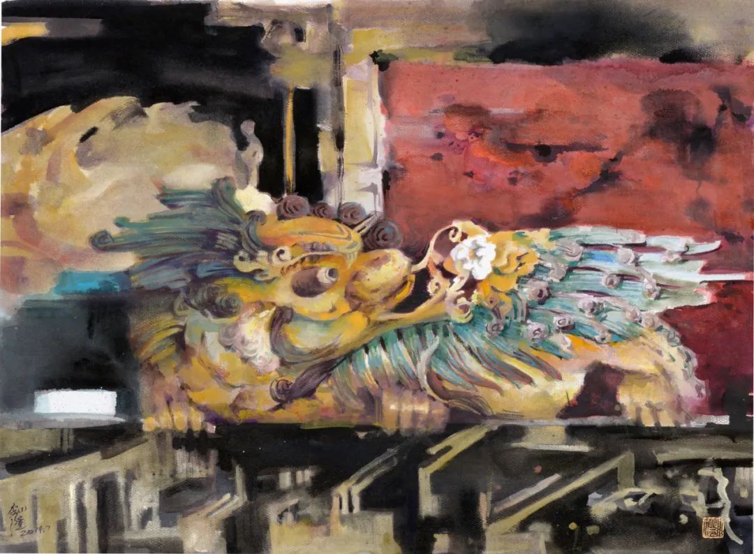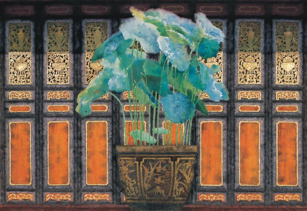 “水当色画”“水色留金”是李小澄先生水彩画的精神内核,同时也是李小澄先生水彩画的独特视觉标志,他在水彩创作中加入民族化的撞水撞粉和民间贴金工艺等技术,使水彩作品体现出具有中国气象的艺术特色。